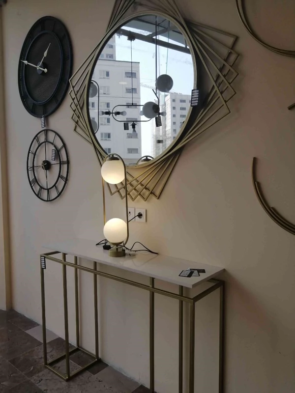 آینههای معمولی کافی نیستند! این آینه دکوراتیو با فریم طلایی شیک و هندسی، طراحی شده تا به دیوار شما عمق، درخشش و شخصیت ببخشد. از این آیتم خاص در ورودی خانه، بالای کنسول یا در اتاق خواب استفاده کنید تا نور را منعکس کند و فضای شما را بزرگتر و روشنتر از همیشه نشان دهد. یک انتخاب شیک برای کسانی که میدانند جزئیات، تفاوت میسازد