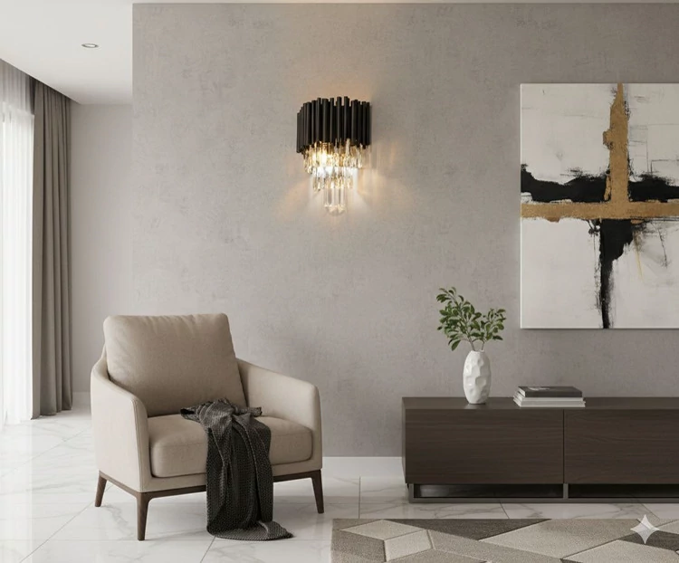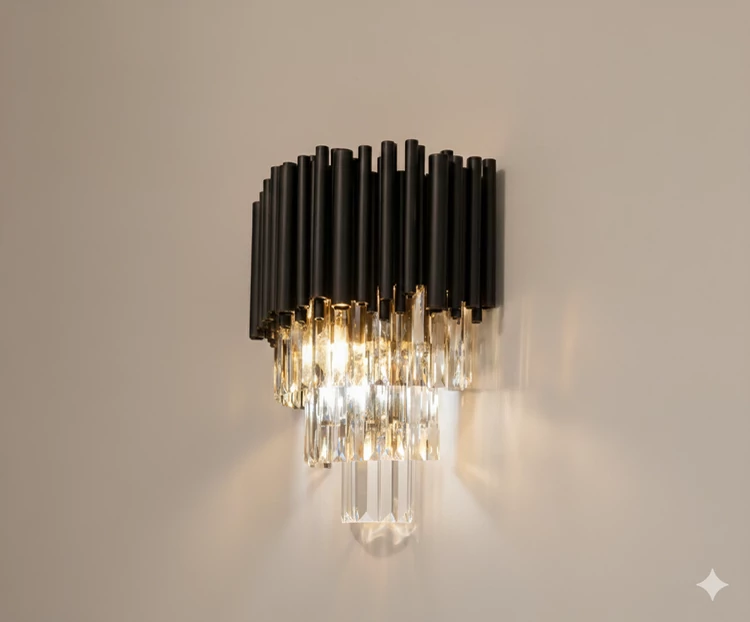 این دیوارکوب/آویز برای فضاهایی که نیاز به تأکید بر ارتفاع و لوکس بودن دارند، بینظیر است. کافی است آن را در کنار یک آینه بزرگ نصب کنید تا یک نورپردازی فوقالعاده مجلل ایجاد کند
