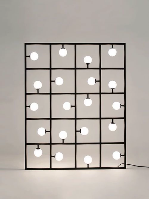 چیدمان نامتقارن: با وجود نظم در شبکه فلزی، محل قرارگیری لامپها در هر خانه متفاوت است. این «بینظمیِ سازمانیافته» مانع از خستهکننده شدن طرح شده و به آن پویایی و روح میبخشد.
