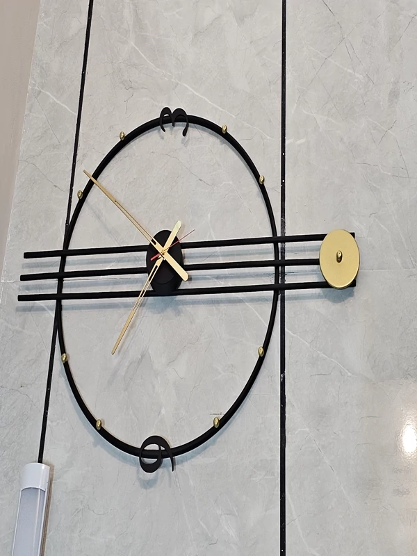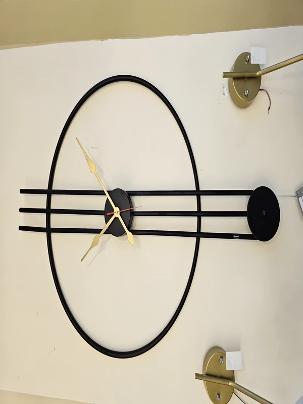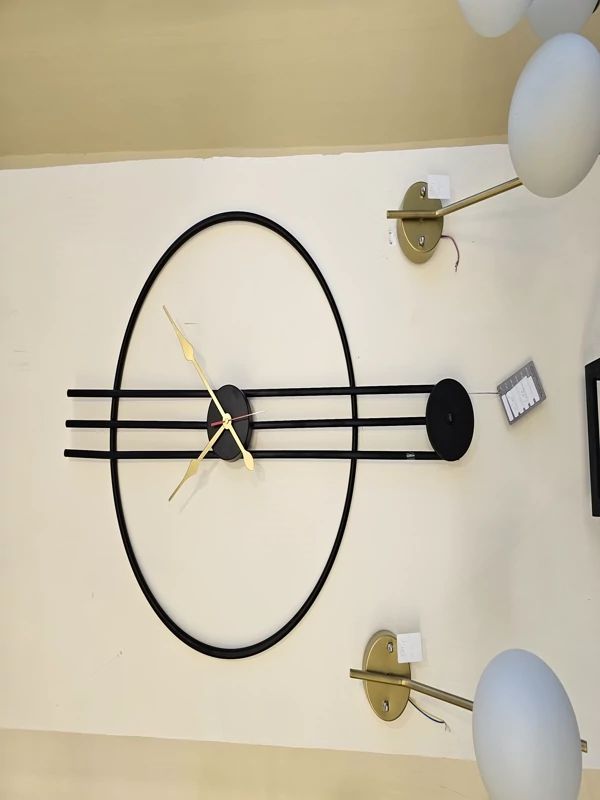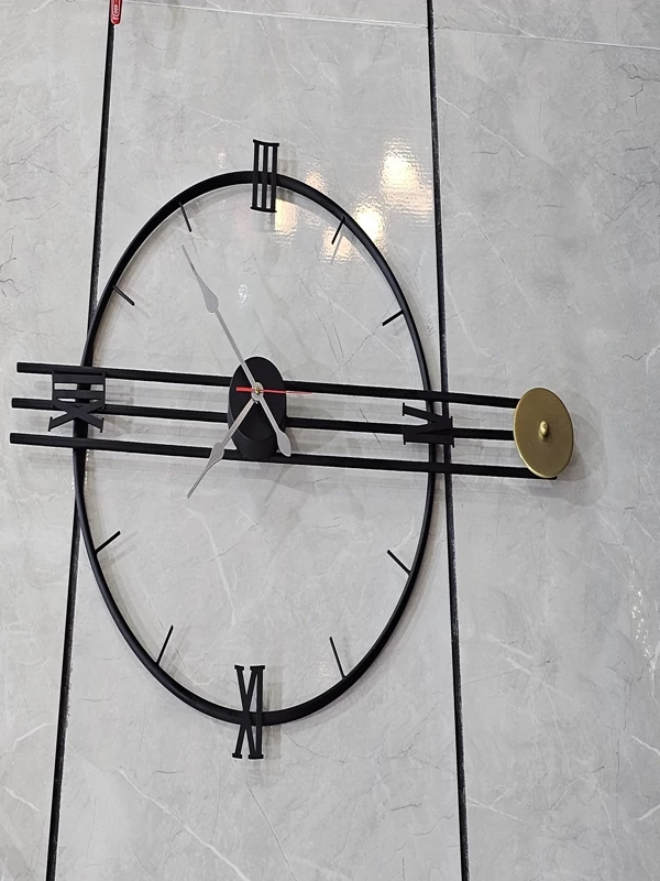 به خانهتان یک نقطه کانونی خیرهکننده اضافه کنید. این ساعت دیواری، با فریم فلزی دایرهای و خطوط عمودی مینیمال، بیانیهای هنری در طراحی داخلی است. ترکیب رنگ مشکی مات بدنه با عقربههای طلایی براق، کنتراستی شیک و امروزی ایجاد میکن