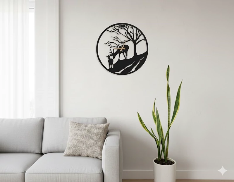 ایجاد عمق تصویری: به دلیل طراحی توخالی (Skeleton)، رنگ دیوار از میان اعداد دیده میشود که باعث میشود ساعت با هر رنگ دیواری (سفید، طوسی، کرم) به خوبی ست شود. خلوت