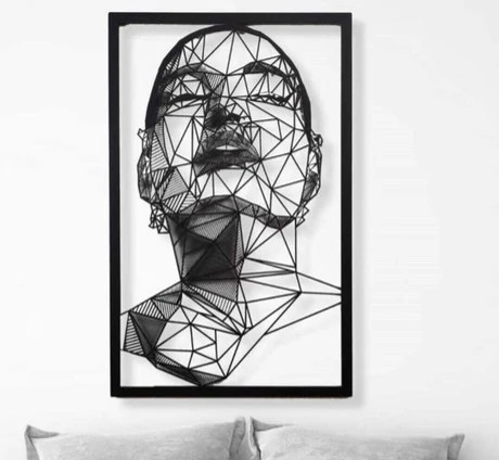 جنس فلزی باکیفیت: ساخته شده از فلز مقاوم با برش لیزری دقیق که جزئیات چهره را به زیبایی به نمایش میگذایجاد عمق هنری: به دلیل برشها و ساختار فلزی، سایهای که روی دیوار ایجاد میکند، به تابلوی شما عمق و جلوهی سهبعدی میبخشد.