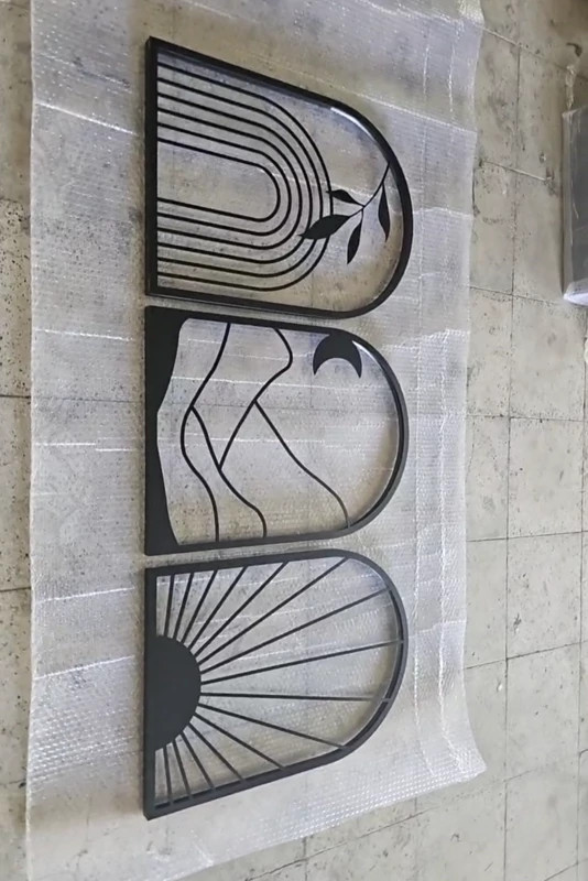 تابلوی فلزی دکوراتیو با طرح ظریف و خاص برش دقیق، رنگ مشکی مات و کیفیت بینظیر برای دکوراسیونهای مینیمال و معاصر. 🔸 قابل سفارش در ابعاد دلخواه. 🔸