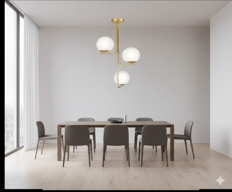 اگر به دنبال المانی هستید که فضای داخلی شما را با ظرافت و درخشش همراه کند، این لوستر طلایی مدرن انتخابی هوشمندانه است. ترکیب رنگ طلایی مات (Satin Gold) با حبابهای کروی سفید، تضاد بصری ملایم و چشمنوازی ایجاد میکند که با هر چیدمانی، از نئوکلاسیک تا مینیمال، سازگار است.