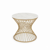 این میز کنار مبلی خاص با طراحی مدرن و هنری، ترکیبی چشمنواز از جلوهی طلایی لوکس و هندسهی خلاقانه است که در نگاه اول چشمها را خیره میکند.