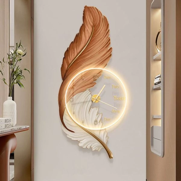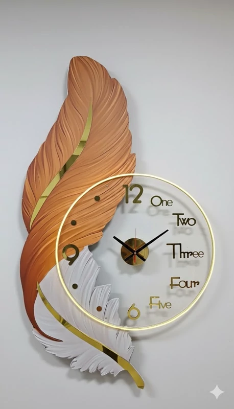 اگر به دنبال تغییری فراتر از یک ساعت معمولی هستید، این اثر هنری مخصوص شماست. طرح پر، نمادی از سبکی، صلح و آزادی است که با ظرافتی خیرهکننده و جزئیات برجسته طراحی شده است. این ساعت-تابلو با فرم کشیده خود، ارتفاع دیوار شما را بلندتر و فضای خانه را مجللتر نشان میدهد. هاله نوری که از دل "پر" ساطع میشود، در شبها جلوهای جادویی به سالن پذیرایی یا راهروی ورودی منزل شما میبخشد.