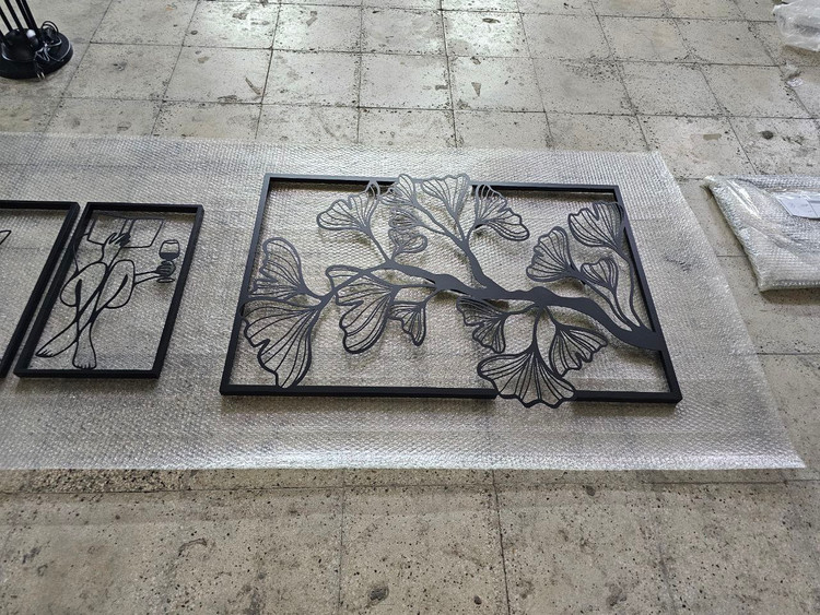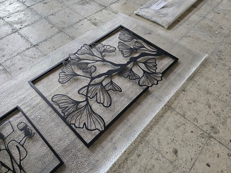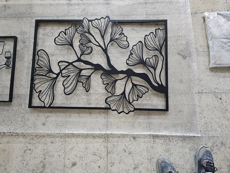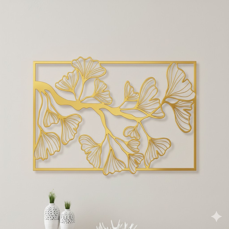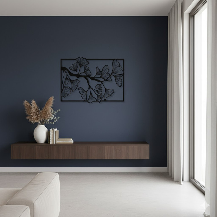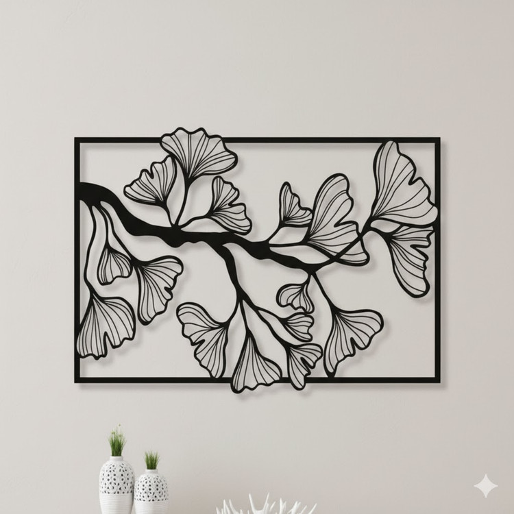تابلوی فلزی دکوراتیو با طرح ظریف و خاص برگ ژینکو. برش دقیق، رنگ مشکی مات و کیفیت بینظیر برای دکوراسیونهای مینیمال و معاصر. 🔸 قابل سفارش در ابعاد دلخواه. 🔸