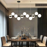 با این لوستر خیرهکننده، قلب خانه خود را روشن کنید. لوستر حلقهای، تجسمی از هماهنگی هندسه و نور است؛ یک دایره قدرتمند از جنس فلز مات که گویهای نورانی را در مداری منظم نگه داشته است.