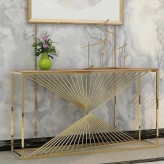 این کنسول شیک و مدرن، یک انتخاب عالی برای افزودن حس لوکس و مدرنیته به فضای پذیرایی، ورودی یا حتی اتاق کار شماست. طراحی آن ترکیبی هنرمندانه از استحکام و ظرافت است که چشم هر بینندهای را به خود جلب میکندطراحی هندسی خاص: ساختار فلزی این کنسول با طرحهای لوزی (Diamond)، جلوهای بصری فوقالعاده ایجاد کرده که آن را از سایر کنسولهای رایج متمایز میکند. این طرح مشبک، عمق و جذابیت خاصی به فضا میبخشد.