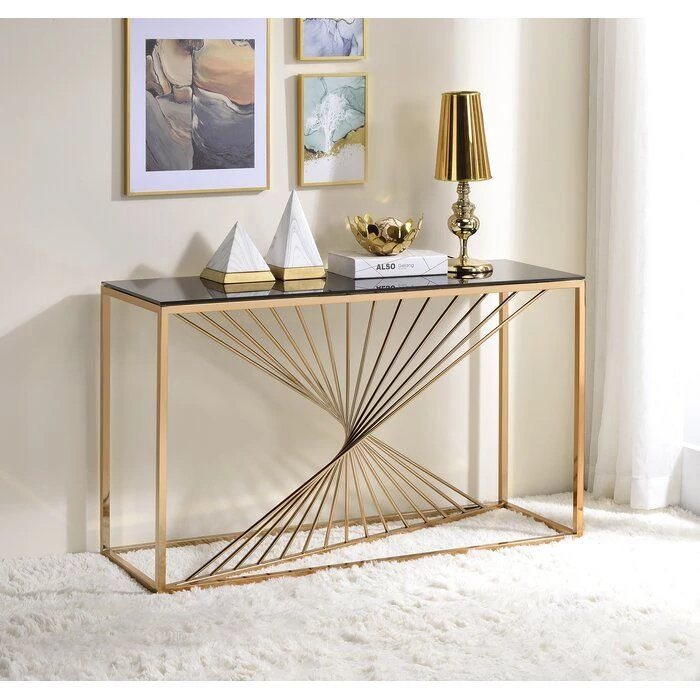 این کنسول شیک و مدرن، یک انتخاب عالی برای افزودن حس لوکس و مدرنیته به فضای پذیرایی، ورودی یا حتی اتاق کار شماست. طراحی آن ترکیبی هنرمندانه از استحکام و ظرافت است که چشم هر بینندهای را به خود جلب میکندطراحی هندسی خاص: ساختار فلزی این کنسول با طرحهای لوزی (Diamond)، جلوهای بصری فوقالعاده ایجاد کرده که آن را از سایر کنسولهای رایج متمایز میکند. این طرح مشبک، عمق و جذابیت خاصی به فضا میبخشد.