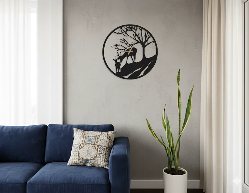 ایجاد عمق تصویری: به دلیل طراحی توخالی (Skeleton)، رنگ دیوار از میان اعداد دیده میشود که باعث میشود ساعت با هر رنگ دیواری (سفید، طوسی، کرم) به خوبی ست شود. خلوت