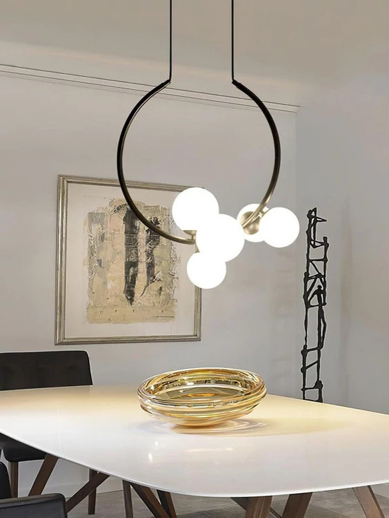 با این لوستر خیرهکننده، قلب خانه خود را روشن کنید. لوستر حلقهای، تجسمی از هماهنگی هندسه و نور است؛ یک دایره قدرتمند از جنس فلز مات که گویهای نورانی را در مداری منظم نگه داشته است.توزیع نور در این مدل کاملاً یکنواخت است، بدون اینکه چشم را آزار دهد. این لوستر برای ایجاد یک «بیانیه طراحی» (Statement Piece) در فضاهای اصلی خانه طراحی شده و با رنگ خنثی و بافت مینیمال، به راحتی با سبکهای صنعتی، مدرن و اسکاندیناوی ترکیب میشود.