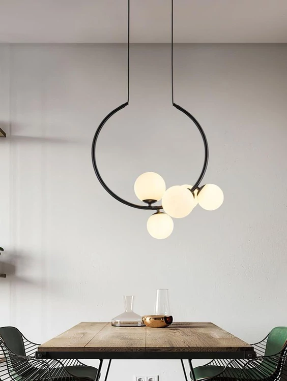 با این لوستر خیرهکننده، قلب خانه خود را روشن کنید. لوستر حلقهای، تجسمی از هماهنگی هندسه و نور است؛ یک دایره قدرتمند از جنس فلز مات که گویهای نورانی را در مداری منظم نگه داشته است.توزیع نور در این مدل کاملاً یکنواخت است، بدون اینکه چشم را آزار دهد. این لوستر برای ایجاد یک «بیانیه طراحی» (Statement Piece) در فضاهای اصلی خانه طراحی شده و با رنگ خنثی و بافت مینیمال، به راحتی با سبکهای صنعتی، مدرن و اسکاندیناوی ترکیب میشود.