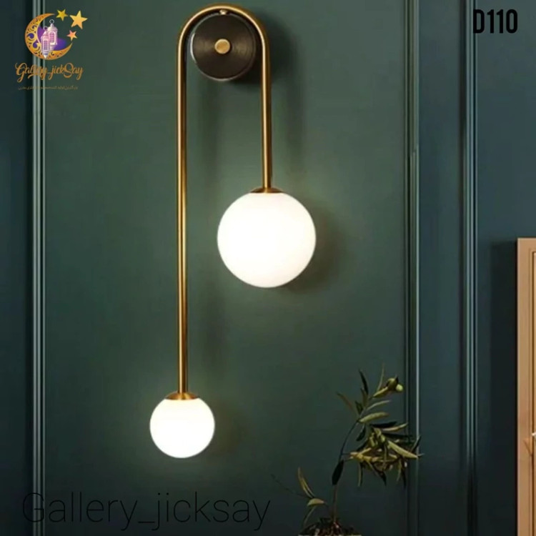 آویز دیواری مدل D110، ترکیبی بینقص از ظرافت هنر مدرن و زیبایی کلاسیک است. این محصول با طراحی آویزان و نامتقارن، که دو گوی شیشهای مات را روی یک پایه فلزی برنجی/طلایی براق معلق کرده است، بلافاصله جلوهای لوکس، آرام و صمیمی به فضای شما میبخشد. این چراغ دیواری برای ایجاد نورپردازی لایهای و تأکیدی در دکوراسیونهای شیک و امروزی یک انتخاب بیبدیل است.