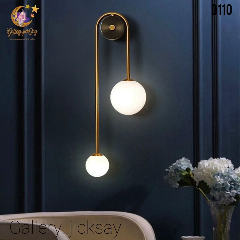 آویز دیواری مدل D110، ترکیبی بینقص از ظرافت هنر مدرن و زیبایی کلاسیک است. این محصول با طراحی آویزان و نامتقارن، که دو گوی شیشهای مات را روی یک پایه فلزی برنجی/طلایی براق معلق کرده است، بلافاصله جلوهای لوکس، آرام و صمیمی به فضای شما میبخشد. این چراغ دیواری برای ایجاد نورپردازی لایهای و تأکیدی در دکوراسیونهای شیک و امروزی یک انتخاب بیبدیل است.