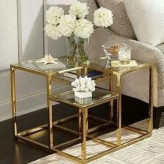 این میز کنار مبلی خاص با طراحی مدرن و هنری، ترکیبی چشمنواز از جلوهی طلایی لوکس و هندسهی خلاقانه است که در نگاه اول چشمها را خیره میکند.