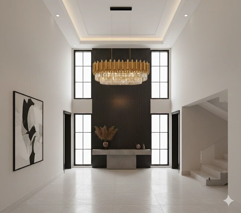 این لوستر فقط یک منبع نور نیست، بلکه یک اثر هنری جواهرنشان است. لوستری که با الهام از معماری باشکوه آرت دکو، شکوه فلز صیقلی را با درخشش منشورهای کریستالی ترکیب کرده است.