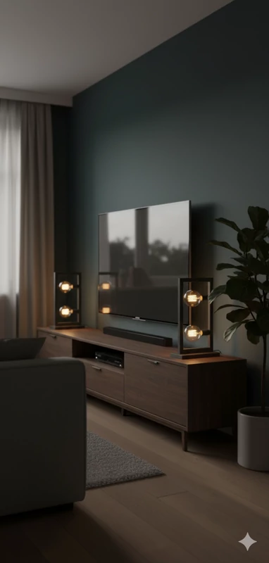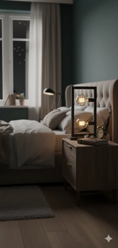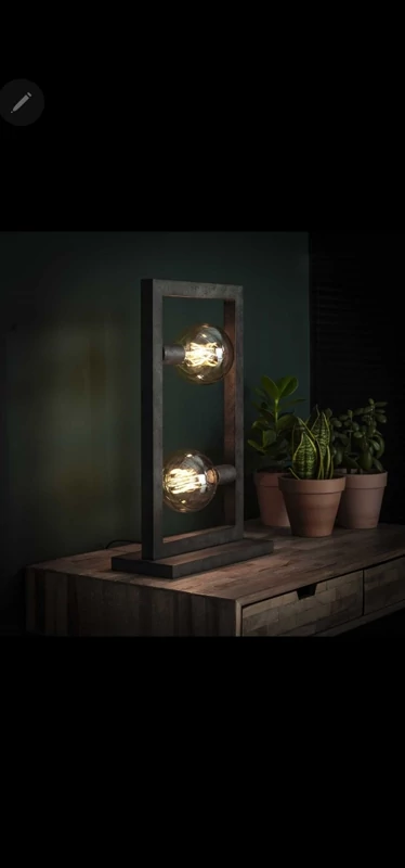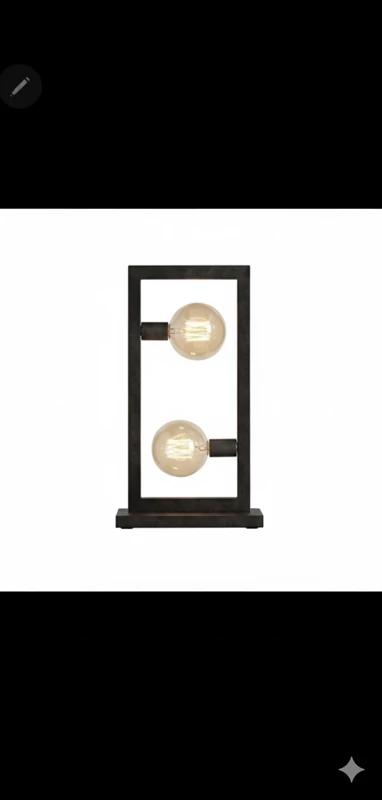 این آباژور مدرن و مینیمال دارای یک قاب فلزی تیره و مستطیلی شکل است که دو لامپ ادیسونی بزرگ و گرد را در خود جای داده است. این لامپها نور گرم و ملایمی از خود ساطع میکنند که فضایی دلنشین و آرامشبخش ایجاد میکند.