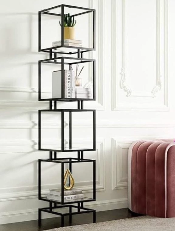 طول ۳۷ سانت ارتفاع ۱۹۰ سانت طراحی,مینیمال، هندسی و مشبک (Cage Design)، سبک صنعتی شیک. جنس بدنه,فلز مرغوب با پوشش رنگ مشکی الکترواستاتیک (مات و بادوامایدهآل برای,کنار تخت خواب، میز کار، کنسول ورودی و قفسههای دکوراتیو.).