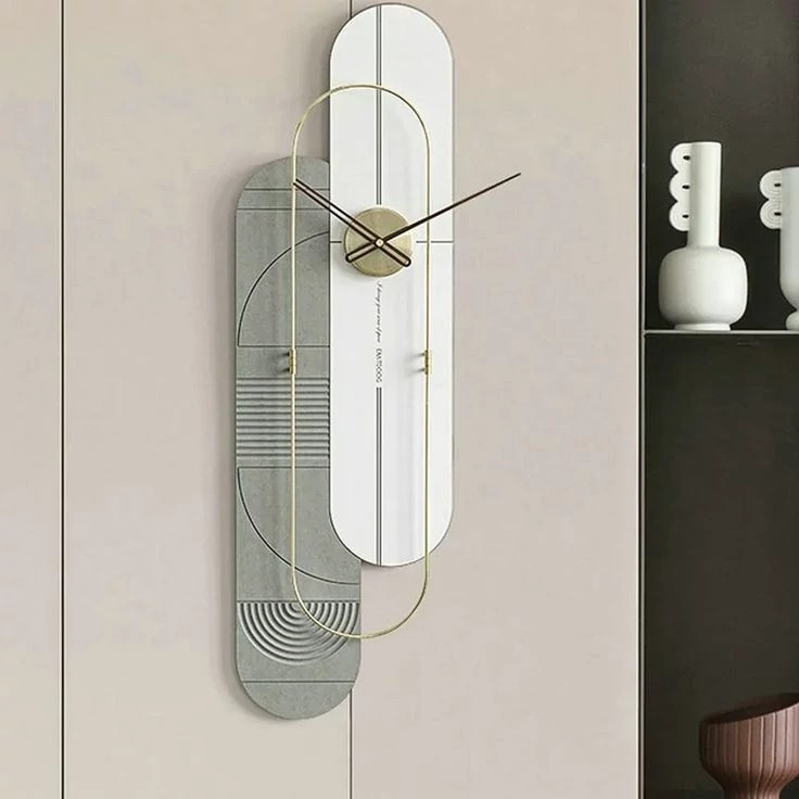 این ساعت دیواری مدرن و عمودی با طراحی خاص دو رنگ (سفید و سرمهای تیره/خاکستری) و فریم فلزی ظریف، جلوهای مینیمال و شیک به دیوار شما میبخشد. ترکیب رنگی و طراحی عمودی آن، این ساعت را به یک اثر هنری مدرن تبدیل کرده است که برای فضاهای خاص و امروزی بسیار مناسب است.