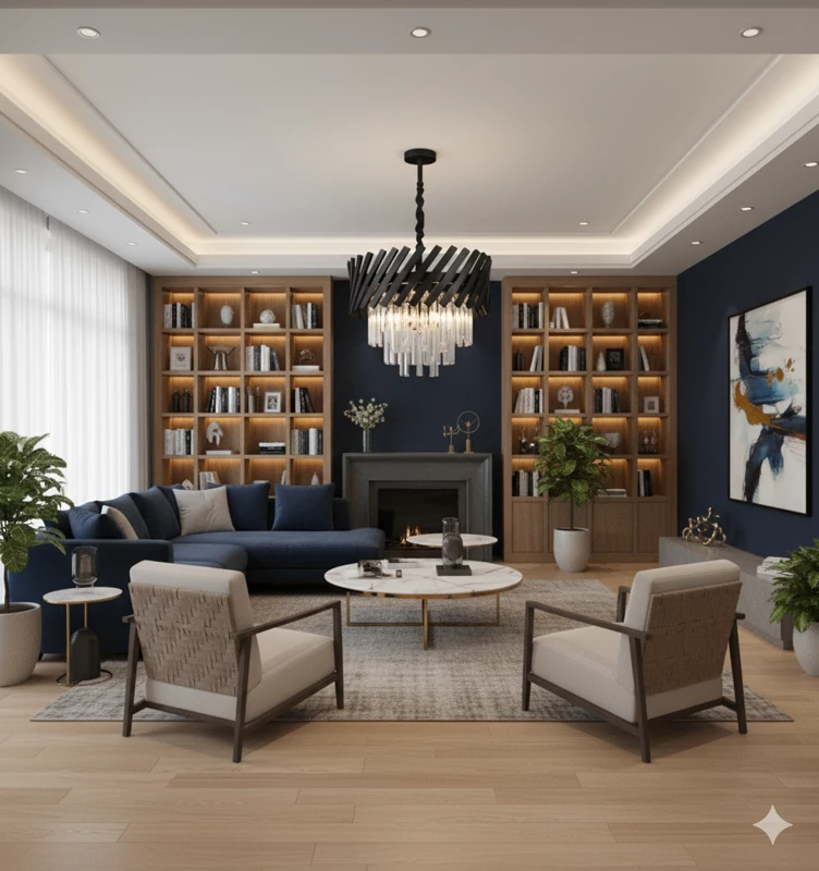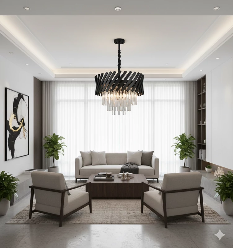 سالن پذیرایی و نشیمن: نصب در مرکز سقف برای ایجاد یک نقطه کانونی خیرهکننده.
