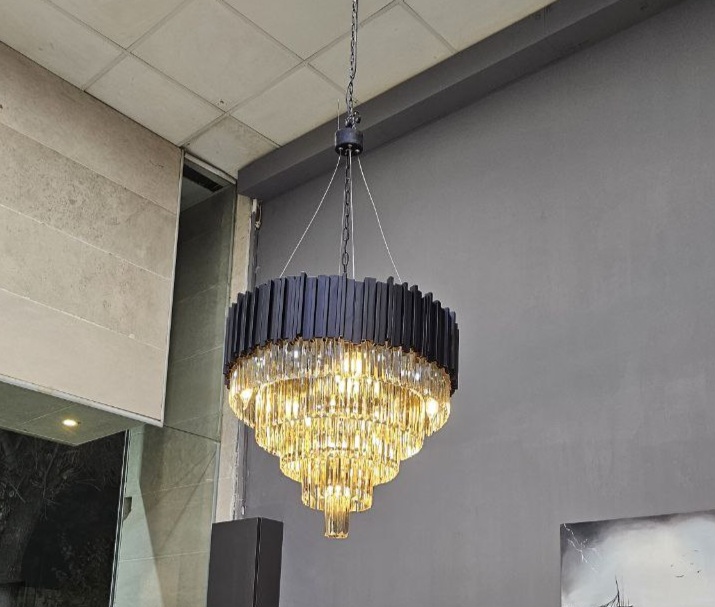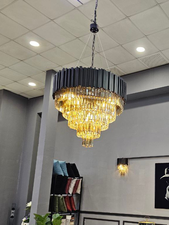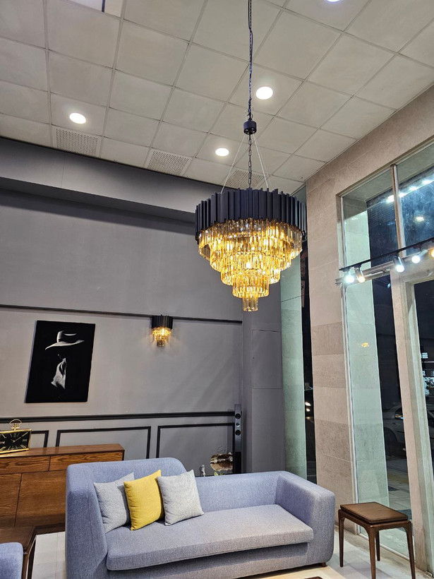 در زیر این موج طلایی، ریزش منشورهای کریستالی، نور را صدها برابر کرده و درخشش فوقالعادهای در فضا ایجاد میکند. این یک انتخاب بینظیر برای خانههایی است که دکوراسیونی مجلل، نئوکلاسیک یا مدرن گلمور دارند و میخواهند