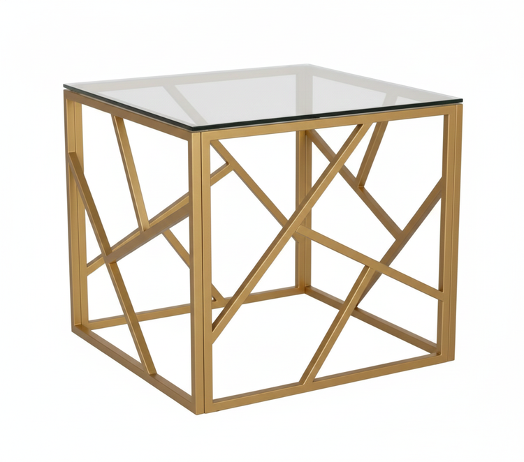 این میز کنار مبلی خاص با طراحی مدرن و هنری، ترکیبی چشمنواز از جلوهی طلایی لوکس و هندسهی خلاقانه است که در نگاه اول چشمها را خیره میکند.
